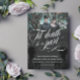 Elegant dark Halloween or goth wedding save the date with Til death do us part written in a swirly white calligraphy script. Add your wedding information in white against a dark gray background with black skeletons and personalize with a photo!