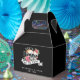 Cool til death do us part wedding favor box with watercolor skulls and roses. Black background. Personalize it with your event details.