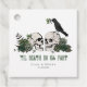 These elegant gothic "Til Death Do Us Part" Irish St. Patrick's Day wedding favor tags feature hand-drawn Irish & gothic themed illustrations in black ink, showcasing husband and wife skulls and a black crow adorned with green roses, leaves, berries, wildflowers and green clovers. The back features a beautiful pattern with all of these elements. All text is editable.