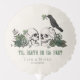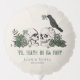 This elegant gothic "Til Death Do Us Part" Irish/St. Patrick's Day bridal shower/wedding balloon features hand-drawn Irish & gothic themed illustrations in black ink, showcasing husband and wife skulls and a black crow adorned with green roses, leaves, berries, wildflowers and green clovers. All text is editable. Printed on both sides.