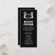 Long "til death do us part" wedding program with a skeleton heart and the details for the ceremony and bridal party. Fully customizable.