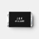 Black bridal shower or wedding thank you favors with skeleton hands forming a heart on the front. Party supplies with an editable date and the bride and groom's initials or names on the back. Be sure to visit our collection to see more coordinating items that match this design for your special event.