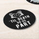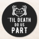 Till death do us part wedding coasters in black with a skeleton hand and white letters. Make sure to visit our collection to see more coordinating items that match this design to celebrate the new Mr. and Mrs.