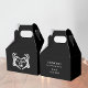 Til death do us part guest favor boxes in black with a skeleton hand and white letters. On the back, you can add a thank you message and personalize it with the Mr. and Mrs. initials, names, surname, and wedding date. For matching designs and an invitation suite please check the collection.