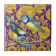(See Product info. & Options, for More Information). Yellow-Gold, Flower Design behind Two Blue-Birds sitting on a branch together, with Gold Breast Feathers, on Dark-Purple background.