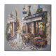 Brick Paved Lane, between Buildings & Shops, Bread in Bakery Window to the Right & 3/Three Tables with Chairs & 3 Croissants(one on each Table, under Store Eve, and Tall, thin, Elegant Blonde(short curled hair) Woman Standing in Lane, wearing a Ground Length, Silvery-White, 1920's Style, Designer Evening Gown with Matching Gloves & Two Gold Necklaces, all on Silver background/Border. My Modified & ©️Design, All Rights Reserved.