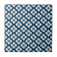 This ceramic tile trivet is shown with a lovely navy blue and white flowers print.