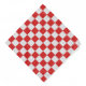 Red and white tiles that are sorted and mixed in a way that make them look like woven ribbons. But they are just tiles. Suitable for Christmas without really being suitable for Christmas.