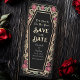 Make a bold statement of eternal love. This gothic wedding Save-The-Date features ‘Till Death Do Us Part’ in a coffin-shaped frame, adorned with thorns, roses, and rose gold accents against a black background. Perfect for a hauntingly romantic celebration! Personalize the text, font, and background color to suit your design preferences. Matching Items in our shop for a complete party theme. Please note that the rose gold on the cards is NOT real foil and is printed in flat colors.