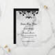 A black crystal chandelier and eerie type decorates this Save the Date on a marble background. It is the coordinating Save the Date for the Till Death Do Us Part Marble Wedding Collection. If additional coordinating items are needed just contact us at prettyfancyinvites@gmail.com with your request.