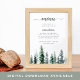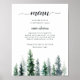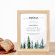 Charming winter woodland menu sign displays your dinner selections in chic calligraphy and traditional block lettering, accented by a row of watercolor pine trees in rich shades of forest green and muted hunter green. Designed to match our Timber Grove wedding collection.