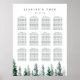 Wedding guest seating chart matches our Timber Grove collection, featuring a row of winter watercolor pine trees in shades of forest and hunter green.