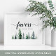 Designed to match our Timber Grove wedding collection, this elegant woodland chic sign invites guests to take a favor. Personalize with two lines of custom text in calligraphy and block lettering (shown with "Favors; please enjoy"), with a bottom border of rustic watercolor pine trees in shades of hunter and forest green.