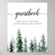 Designed to match our Timber Grove wedding collection, this rustic woodland chic sign invites wedding guests to sign your guestbook. Personalize with two lines of custom text in calligraphy script and traditional serif lettering (shown with "Guestbook; please leave your wishes for the new Mr. and Mrs. [name]"), with a bottom border of watercolor evergreen trees in hunter and forest green.