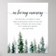 Designed to match our Timber Grove wedding collection, this winter woodland chic sign is perfect for placing at a memorial table or display honoring loved ones who have passed. Personalize the header and body text (shown with "In Loving Memory" and a brief poem), accented with a bottom border of watercolor pine trees in shades of hunter and forest green.