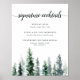 Invite your guests to grab a favorite libation from the bar with our charming rustic wedding bar menu sign. 11x14 poster features a bottom border of watercolor pine trees in rich shades of hunter and forest green, with "signature cocktails" in off-black calligraphy script and block lettering. Personalize with your specialty cocktail names and descriptions beneath. Designed to match our Timber Grove collection for autumn or winter weddings in forest or woodland settings.