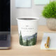 Elevate your event with this custom paper cup from the Timberline collection by Redwood & Vine Design Co. Featuring a serene watercolor mountain and evergreen forest illustration, this disposable cup is personalized with your family name and event date. It’s the perfect fit for coffee bars, cider stations, or welcome drinks at winter weddings, mountain venues, or forest-inspired celebrations.