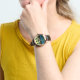 Has heft and feel of expensive stainless steel quartz watches. Good band with safety catch. I removed links, which is easy because engraved arrows show direction to push the linking pins. As always by this seller, the image (a railroad logo) is a perfect reproduction of my emailed image, and is precisely spaced and aligned.