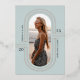 A simple and elegant graduation announcement design with art deco influences, featuring your graduate's name, graduation class year, and school, arranged around an arched element adorned with rose gold foil line art, with a vertical photo in the center. Personalize the back with a custom message and an additional photo.