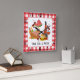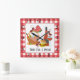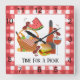 Time For A Picnic is a whimsical design featuring a delicious picnic and a trio of hungry ants. One ant is sitting on top of a wicker basket, eating a piece of watermelon. Another ant is eating a hamburger, while the third ant is having a glass of red wine. The background is styled to look like a napkin.