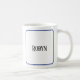 This is the perfect mug for a coffee drinker, with the words: Time for Coffee. The words are emphasized by being contained in a blue square with rounded edges, and decorated with a cup of coffee in matching blue. You can also personalize the mug with your name. The design is simple, and effective.