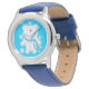 The blue band is the right color for a boys watch. My grandson loves lacrosse and the watch is easy to put on. He is ten years old. The lacrosse picture is very clear and I like the blue hands on the watch. It's good for teaching time.