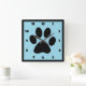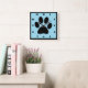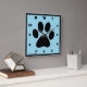Stylish and fashionable, art deco numbers surround this black pawprint on a light blue background.