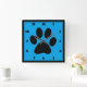 Stylish and fashionable, art deco numbers surround this black pawprint on a medium blue background.