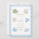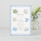 This elegant baby shower invitation features a charming tea party theme with beautifully illustrated teapots and teacups in soft floral patterns. The delicate blue typography combined with pastel tones creates a timeless and graceful design, perfect for celebrating a mom-to-be.