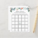 Bridal shower bingo card featuring watercolor cascade of greenery and pink florals with a teapot at the free-space. A fun way to interact with shower guests while the bride-to-be opens her gifts at her wedding shower.
