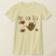 It's always time for tea with our fun t-shirt for tea jennies who love a cuppa! The design on the shirt is a floral patterned tea pot with matching tea cup. The teapot is tilted as it pours colorful flower shapes into the cup. On either side are heart shapes. The caption at the top of the illustration reads Time for Tea, in the same pretty floral pattern.