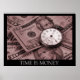 An old pocket watch atop lots of currency and the words "Time is Money"