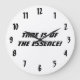 This is a clean and elegant wall clock, white background with black numbers of a simple style. The perfect clock for people who like to be reminded to get on with things! Features the text "Time is of the essence!" in a font style that speaks of urgency! You of course can alter the text to say something else if you wish.
