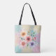 Add a soft, dreamy touch to your space with this tie dye watercolor floral design. Featuring a delicate bouquet of hand-painted flowers in pastel shades of pink, peach, lavender, and blue, this artwork blends beautifully with a vibrant tie-dye inspired background. The airy, whimsical style creates a calming yet colorful aesthetic, perfect for brightening any room.