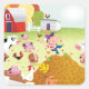 Artist: Rob McClurkan | Turtle Issue,boy frolicking around on a farm with farm animals and fall leaves