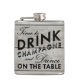 This is a fun and flirty flask that says, "Time to Drink Champagne and Dance on the Table" on a illustrated barn board background, making it a perfect 21st birthday gift, holiday gift or bachelorette gift.