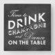 "Time to drink champagne and dance on the table" accents this cute wall clock.