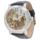 Time To Feed The Chickens Wrist Watch. Chickens and a Rooster feeding at the farm, vintage image.