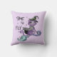 Time To Fly – Cute Purple Witch Cat Halloween Throw Pillow