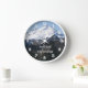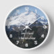 For the great outdoors enthusiast! Decorate a living space with this stylish wall clock with white numerals and features a scenic photo image of snow capped Mount Baker, located in the Pacific Northwest, along with a saying that reads, Time to head to the mountains." Select your clock style and size. Use to decorate a living room, dining room, kitchen, bedroom, or any other room.