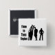 Silhouette of a man upside down in a dumpster, with a man and a woman standing by, with the text, "Time to Toss Taylor."