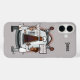 A phone case with a funny cartoon about time travel. The background, image and text can be personalized. Original artwork by DBcartoons.
