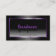 Make a lasting impression with this elegant and modern business card design featuring a black and white color gradient with a luminous shimmery purple decor frame. Matching an outstanding font with mirror shadow effect.
