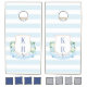 Timeless Blue White Coastal Monogram Crest Cornhole Set