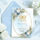 Timeless Boho Dusty Blue Floral Greenery 90th Bday Invitation