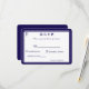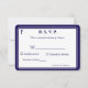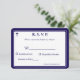Design front features the traditional format for a wedding response card displayed in a navy-blue font against a white background. The image of a cross is displayed at top corner. Entire design is framed by an elegant navy and white border.