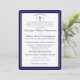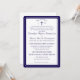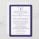 Design features the traditional format for a Catholic wedding invitation displayed in a navy-blue font against a white background. Top displays the monogram of bride and groom on either side of a cross. A small heading is featured above as an arch. Design is framed by an elegant navy and white border.