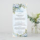 Pair with matching invitations, place cards, and table numbers for a cohesive, stylish look. Make your reception unforgettable with this dusty blue and gold floral menu — the perfect finishing touch for your elegant wedding day.