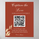 Capture the love QR code wedding sign to display at your wedding or other event. Capture the grace of the timeless flowers with this wedding sign.