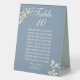 Timeless Floral Symphony in Blue Wedding Table Tent